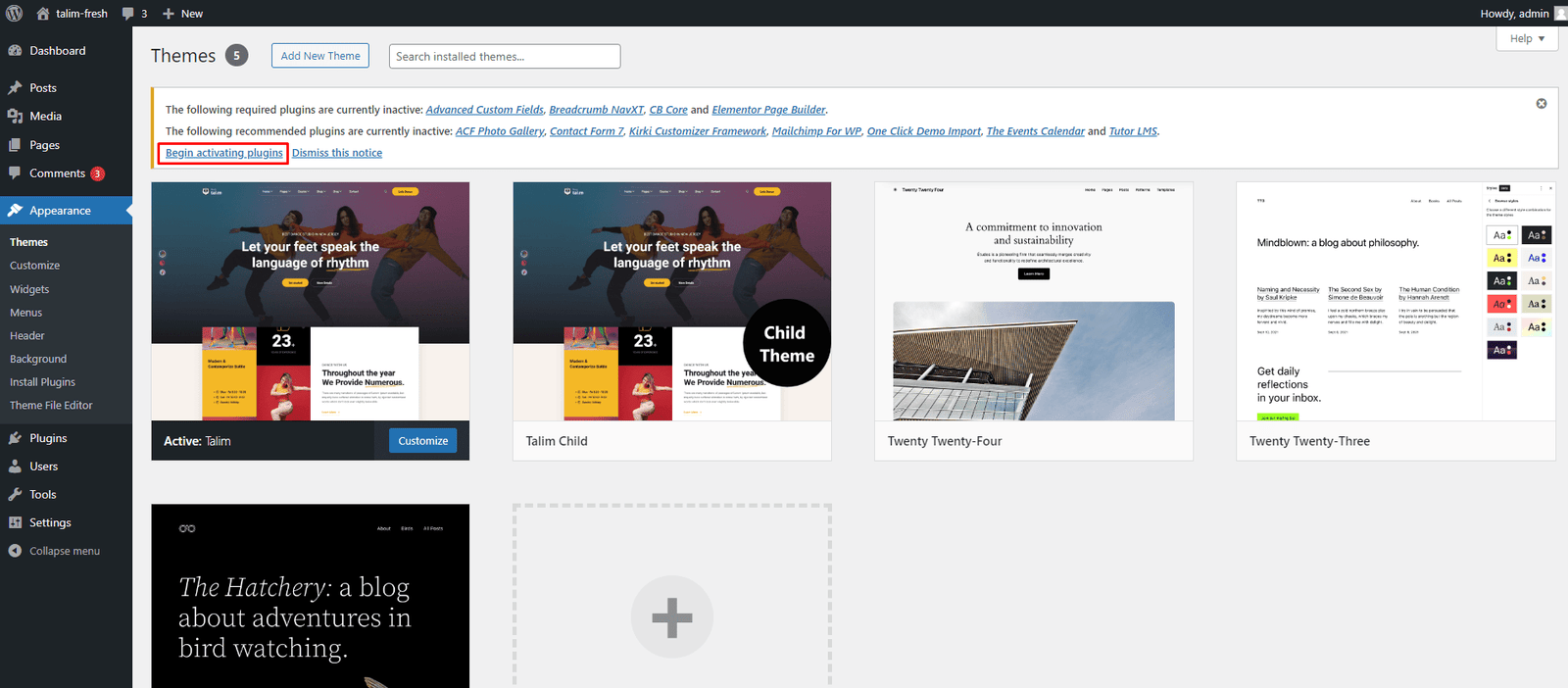 You will now see Talim Theme listed among the other